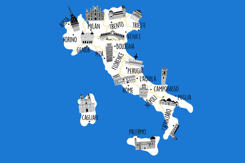 Στις πόλεις της Ιταλίας ελάχιστα σημαντικό είναι το να επισκεφτεί κανείς μουσεία για να ζήσει λίγο από την ιστορία της καθώς οι περισσότερες πόλεις, διατηρημένες όπως είναι, θυμίζουν πολύ έντονα το παρελθόν τους. Μικρές ή μεγάλες πόλεις, όλες διαθέτουν ένα ιστορικό κέντρο, με μια πλατεία και έναν καθεδρικό ναό ή και άλλα μεγαλοπρεπή κτίρια όπως αρένες, πύργους, παλάτια, κάστρα και άλλα μνημεία.